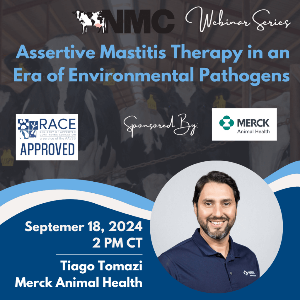National Mastitis Council’s (NMC) Sept. 18 webinar, led by Tiago Tomazi, Merck Animal Health, addresses “Assertive Mastitis Therapy in an Era of Environmental Pathogens.” This free, one-hour educational offering starts at 2 p.m. Central time (USA/Canada).