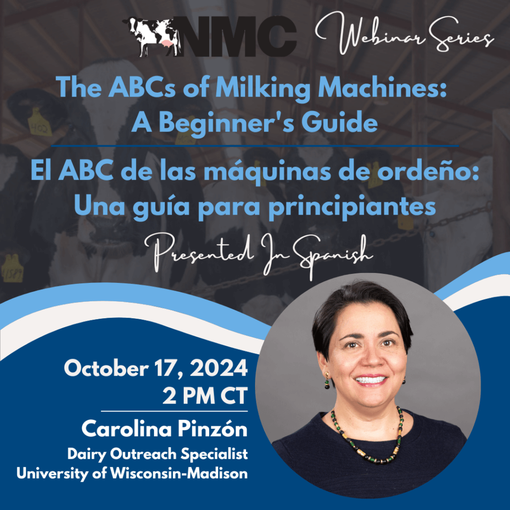 Join National Mastitis Council (NMC) for its Oct. 17 webinar – presented in Spanish – starting at 2 p.m. Central time (U.S./Canada). Carolina Pinzón, dairy outreach specialist at the University of Wisconsin-Madison, Division of Extension, will address “The ABCs of Milking Machines: A Beginner’s Guide.” The one-hour webinar is free.